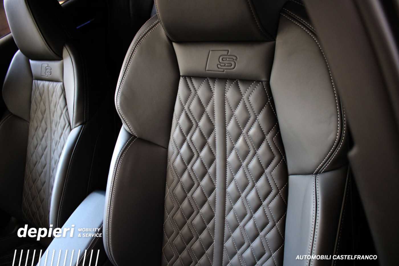 Equ: 8YFS5Y, EA8 Estensione della garanzia +3 anni max. 100.000 km, GB1 Supporto LTE per Audi Phone Box, IT3 Audi Connect Navigation & Infotainment plus, IU4 Audi Application Store e interfaccia per smartphone, KA2 Telecamera post, KH5 Clima autom a 3 zone, KS1 Head-up display, N4X Pelle Nappa pregiata con trapuntatura a rombi e logo S in rilievo, QJ1 Modanature interne in look alluminio, QL5 Vetri oscurati parasole, QQ3 Pacch illuminazione ambiente pro, Q1D Sedili sportivi ant, UH2 Assist alla partenza, VF1 Pedaliera in acciaio inox, VT5 Soglie d'ingresso anteriori con inserti in alluminio, illuminate, scritta S, 0P6 Terminali di scarico cromati neri, 1KJ Freni a disco post da 17 pollici pinze freno verniciate in rosso, 1LZ Freni a disco ant da 18 pollici pinze freno verniciate in rosso, 1XX Volante in pelle a 3 razze con multifunz plus e paddle del cambio, 3A5 Fissaggi ISOFIX per seggiolini per bambini ant, Top Tether e i-Size per i sedili post esterni, 3L4 Sedili ant regolabili elettric con funzione memory per il sedile del conducente, 3NT Schienale del sedile post ribaltabile e frazionabile, 3S2 Mancorrenti sul tetto neri, 4A3 Sedili ant riscald, 4E6 Apertura comfort del portellone del bagagliaio, 4GF Parabrezza in vetro atermico, 4K6 Chiave comfort con Safelock, 4L6 Specchietto retrovisore interno antiabbagliante autom senza cornice, 4ZP Pacchetto styling nero plus, 5MQ Inserto decorativo con struttura Carbon Atlas, 6C4 Airbag laterali anteriori e post con sistema airbag per la testa e airbag interattivo, 6FJ Alloggiamenti degli specchietti retrovisori esterni neri, 6F7 Applicazioni sul volante in look cromato, emblema S, impugnature del volante in pelle traforata e Cuciture a contrasto, 6I6 Cruise Assist adattivo con Emergency Assist, 6NQ Rivestimento del padiglione in tessuto nero, 6XL Specchietti retrovisori esterni regolabili elettricam, riscald e ripiegabili, con funzione di oscuramento autom e memoria, 7AL Sistema allarme antifurto, 7HF Bracciolo in similpelle, 7P1 Supp lombare a 4 vie per i sedili ant, 7UG Sistema di navigazione MMI plus con MMI touch, 7W7 Sistema di protezione proattiva degli occupanti, ant, laterale e post, 79H Avviso di cambio corsia con avviso di uscita, assistenza al traffico trasversale post, 8G4 Fari ant Matrix LED con dynamic light staging e indicatori di direzione dinamici, 8T3 Cruise control adattivo, 8VP Fari post a LED con dynamic light staging e indicatori di direzione dinamici, 8X8 Sistema lavafari, 9S9 Audi virtual cockpit plus, 9VS Sistema audio premium SONOS con suono 3D, 9ZE Audi phone box, 98C Pacch comfort 2,98G Pacch climatizzazione plus, 98S MMI experience pro, 99F Pacch assistenza 5, 99I Pacchetto assistenza Sistemi di protezione e avviso, 99W Pacch interni 11, 49D Cerchi Audi Sport multirazze S-Design, nero antracite, torniti a specchio, 8.0Jx19, (+ treno invernale x 18).